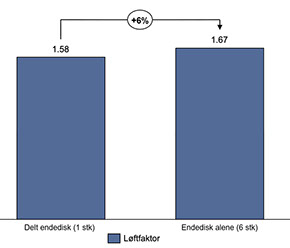 Butikkene som har BigOne alene i endedisken har 6 % høyere løftfaktor enn butikkene der BigOne deler endedisken og de har samme bruk av POS-materiell​ I denne gruppen er Big One i endedisk med pop-up, og prismerking. Den eneste forskjellen er om Big One deler endedisk med andre produkter.​