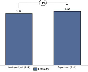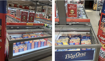 Butikker med fryseskjørt har 4 % høyere løftfaktor sammenlignet med butikkene uten fryseskjørt. Merk! Her er Big One plassert ved andre produkter, ingen observasjoner for Big One alene i endedisk med fryseskjørt. I denne gruppen er Big One plassert i endedisk sammen med andre produkter, med pop-up, uten prismerking på endedisk. Den eneste forskjellen er fryseskjørt.​