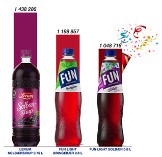 Årsvolum nådd på bare 36 uker!!* * Mål: 920’ flasker solgt første 52U i markedet. Opnådd: 945’ flasker solgt per september. Per uke 48 har vi solgt 1 050 000 av varianten. ** Kilde: NIQ Discover, Unit sales, YTD W48 36 +5 % enheter +7 % verdi Solbær er best- selgende smak i kategorien