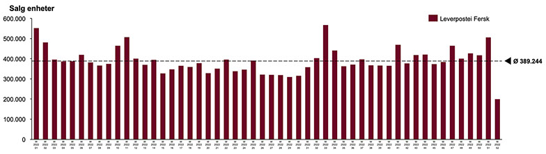 leverpostei - salgsutvikling Leverpostei – aktuelt hele året –389 000 enheter pr uke