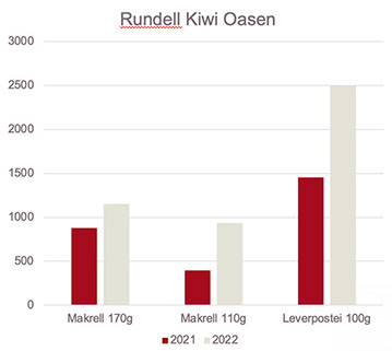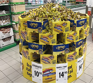 Måleparametre: NÅR: uke 28-37 (målt mot samme periode i fjor (likt antall dager)) HVOR: Plassering ved siden av brødavdeling Ingen prisnedsettelseProdukter: Makrell 170g, Makrell 110g, Leverpostei 100g. Volum: 12 1/3 paller