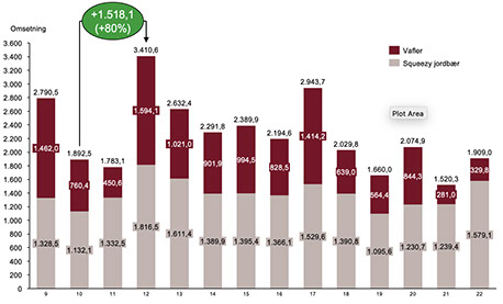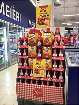 inn mot mai/juni hvor det er mange avslutninger, dugnader og helligdager Stort salgsløft på Rema moa ved flott eksponering av vafler og syltetøy!