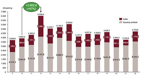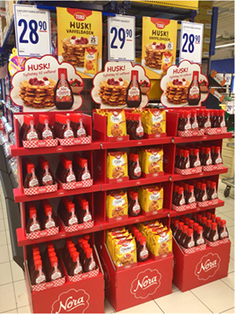 Stort salgsløft på Rema Blindheim ved flott eksponering av vafler og syltetøy! (mai britt h. mansfield) Nora på ekstraplass og sameksponering med TORO Bake gir kjempeløft!