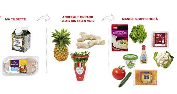 Middagsforenkling = Middagsprodukter på tvers av tørrvare og kjølt.