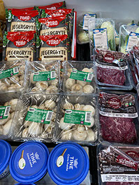Sammen med middagstilbehøret! - Fløte og creme fraiche, hvitløksbrød - Asiatiske gryter med naanbrød, raita, srirachamayo, soyasaus, ris, kokosmelk - Meksikansk gryte med mais, bønner, farse (kjøtt eller vegetar), revet ost, rømme, nacho chips - Jegergryte med sopp, rotgrønnsaker, erter