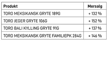 Middagsforenkling = Middagsprodukter på tvers av tørrvare og kjølt.