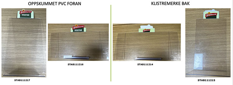 plantebasert - mersalgsideer Som et resultat av rebrandingen fra Naturli’ til Stabburet, har vi i dag mange fryseskillere ute i butikk som har NATURLI’ branding. Ettersom vi ikke lenger har rettighetene til å bruke merkevaren, skal disse fryseskillerne rebrandes til Stabburet Vegetar. Vi har derfor produsert to overlegg (Liten og stor) som man kan klistre oppå det gamle NATURLI’ designet, som gjør at vi kan fortsette å bruke fryseskillerne og samtidig promotere for Stabburet Vegetar. Hver fryseskiller trenger to overlegg: Ett foran med oppskummet PVC, og ett bak med klistremerke Begge typene kommer med lim på baksiden Om behov for flere fryseskillere kan dette bestilles på 3PL under Diverse Merker -> Diverse Fryseskillere