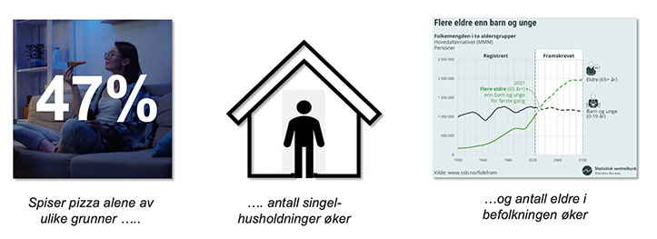 Mindre formater bidrar til vekst i kategorien - svært mange spiser pizza alene, økende andel singelhusholdninger, og befolkningen blir stadig eldre