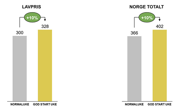 Kilde: NIQ enhetssalg | Gjennomsnittlig uke i sesong vs. utenom sesong​