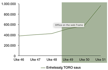 jul er en viktig sesong for saus​ Kilde NIQ | Enhetssalg TORO saus (trad) | Norge total | Snitt juleukene =49-52 vs. snittuke 2024 Ca. 60% flere solgte sauser i juleukene* vs. snitt-salgsuke​