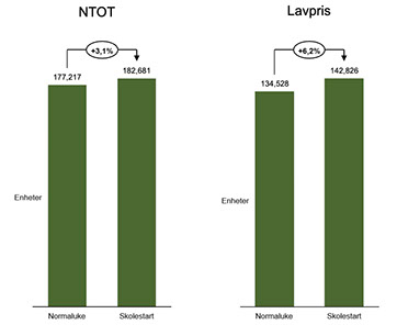 Kilde: NIQ enheter – gjennomsnitt normaluke u28-30 og skolestart 32-34 2024​