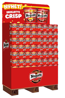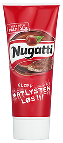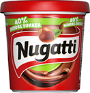 Nugatti 40% Mindre sukker 12x450g​ Nugatti ORIGINAL 12x450g Nugatti Tube 12x250g Sjokade 30% mindre sukker 12x450g Nugatti Crisp 12x420g Nugatti Original/Crisp 288xass 1/3 pall Nugatti Air 12x340g