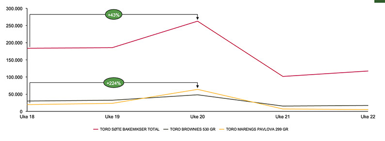 Totalt har TORO søte bakemikser enhetsvekst på 43%!