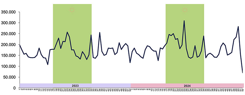 Kilde: Nielsen, ukentlig enhetssalg FUN Light 2023 / 2024