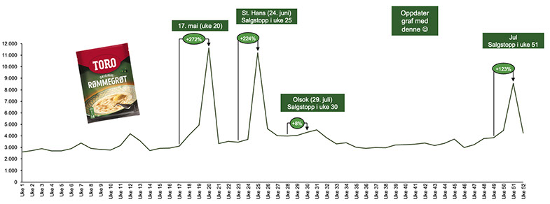 NIQ | TORO rømmegrøt | Enhetssalg | Norge total | Uke for uke 2024